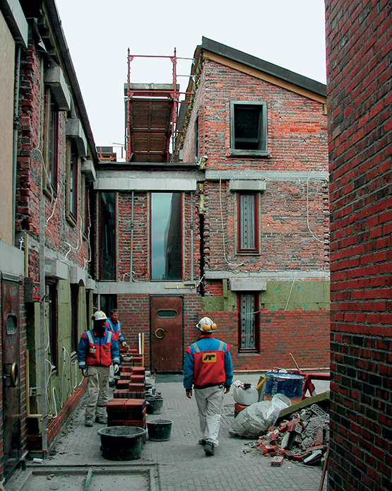 Hele ytre vange i skallmurvegger må mures om på grunn av omfattende oppsprekking kombinert med fukt-, frost- og korrosjonsskader [951]. Bygningene ble oppført i perioden 1981–1985. Foto: SINTEF Byggforsk