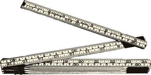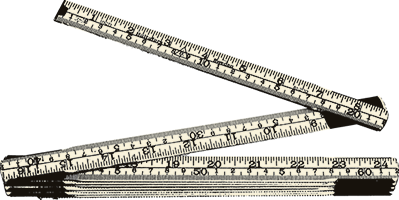 Forholdet mellom centimeter og tommer vist på vanlig tommestokk