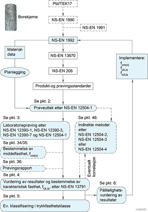 I pkt. 4 suppleres metodene i NS-EN 13791 med SINTEFs egne anbefalinger når formålet er å implementere prøveresultatene i kapasitetsberegninger for den aktuelle konstruksjonen eller konstruksjonsdelen som undersøkes.