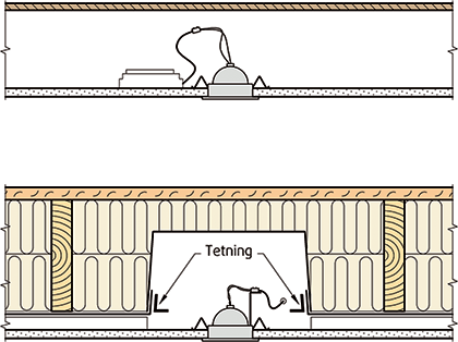 Obs ved montering i bjelkelag: Lufttett sjikt må ikke brytes