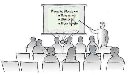 Bladet beskriver utforming, innredning og utstyr i møte- og konferanselokaler. Det redegjør for de viktigste bruks- og bygningsmessige hensynene som man bør legge til grunn for prosjekteringen. Bladet omtaler også hvordan man kan samle flere møte- og konferanselokaler i en konferanseavdeling i bygningen.