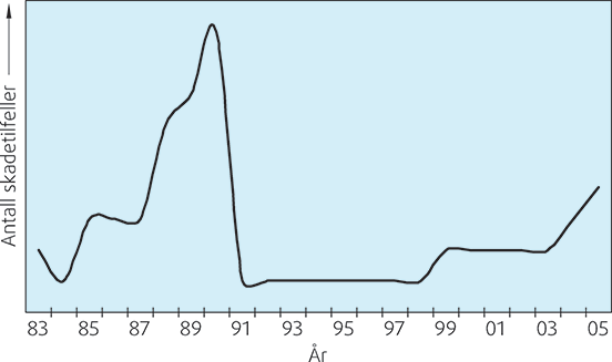 Fordeling av skader undersøkt av Byggforsk i perioden 1983–2005