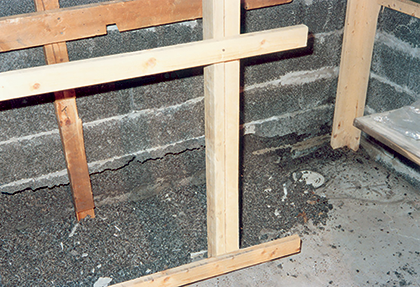 Sulphate damage in a basement wall. Crumbling of the LWA blocks is caused by a too high content of sulphur. Photo: SINTEF Building and Infrastructure