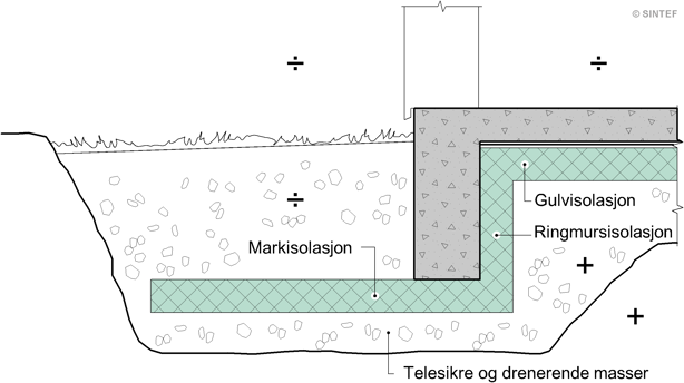 Anvisningen gjelder på steder med telefarlig byggegrunn hvor ringmuren har redusert fundamenteringsdybde. Den viser blant annet: