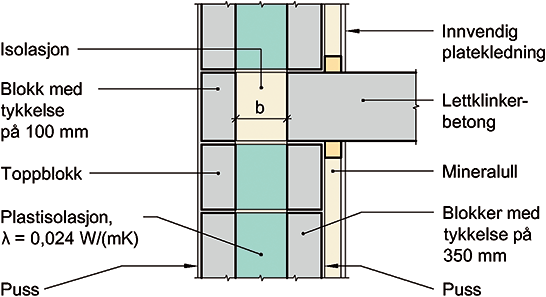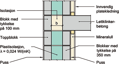 Blokktykkelse i veggen er på 250 eller 300 mm.