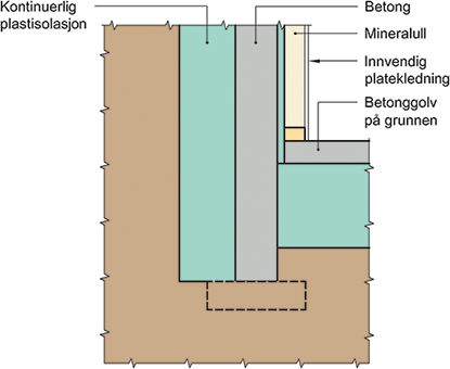 Kuldebroverdier. Betongvegg mot terreng, golv på grunnen