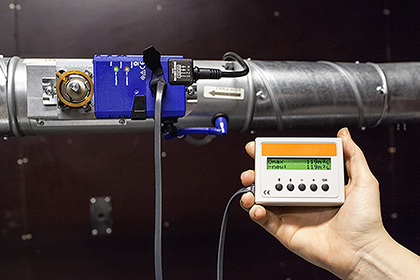 Innregulering av et behovsstyrt anlegg med håndholdt programmeringsenhet. Foto: SINTEF Byggforsk