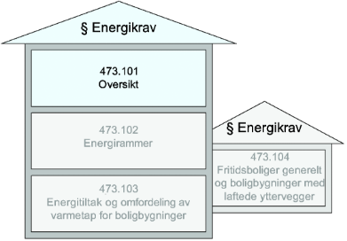 Energikravene til de ulike bygningstypene er behandlet mer detaljert i Byggdetaljer 473.102, 473.103 og 473.104.