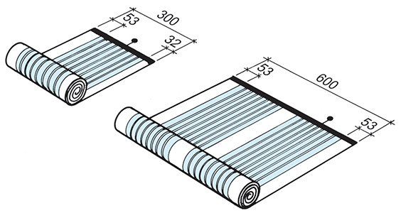 De skraverte feltene viser varmeavgivende flater i folien. De øvrige feltene kan brukes til gjennomspikring når plater eller paneler skal settes utenpå foliene.