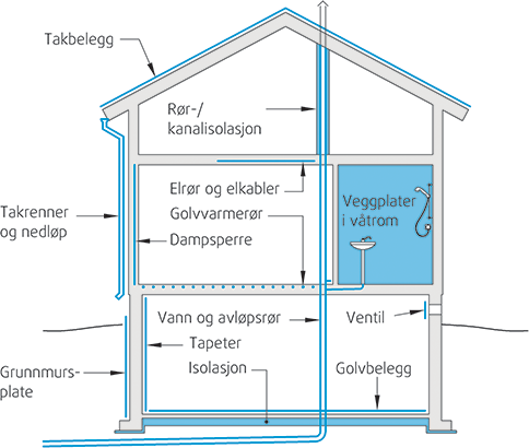 Isolasjonsmaterialer av plast er omtalt i Byggdetaljer 520.339 og 573.344.