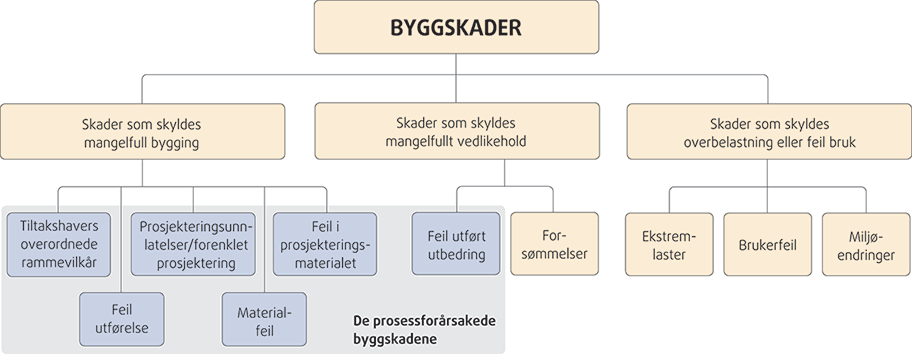 prosessforårsaket byggskade: skade på bygg som skyldes at det under utredning, prosjektering, produksjon eller materialtilvirkning ikke har lyktes en aktør å følge normert, standardisert, anerkjent metode eller konkrete spesifikasjoner.