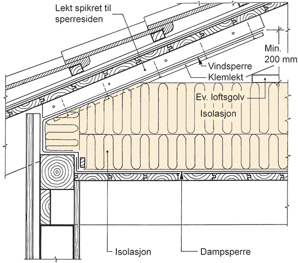 525.107 Skrå tretak med oppvarmet rom i deler av loftet