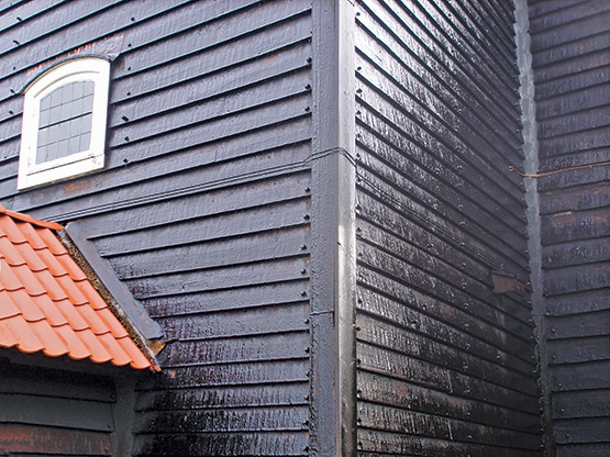 Overflatebehandling av utvendig bordkledning er behandlet i Byggforvaltning 742.641 Utvendig behandling av trehus fra før 1960. Materialbruk og fargesetting og Byggforvaltning 742.642 Utvendig behandling av trehus fra før 1960. Fargeundersøkelse og ny maling.